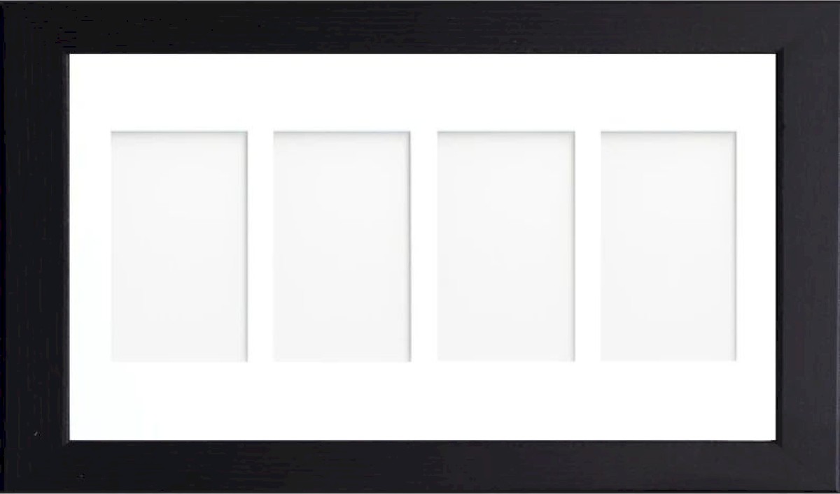 Multi Aperture Black Photo Picture Frame | Holds 4 6"x4" Photos Wooden Effect 20 x 10Inch Frame