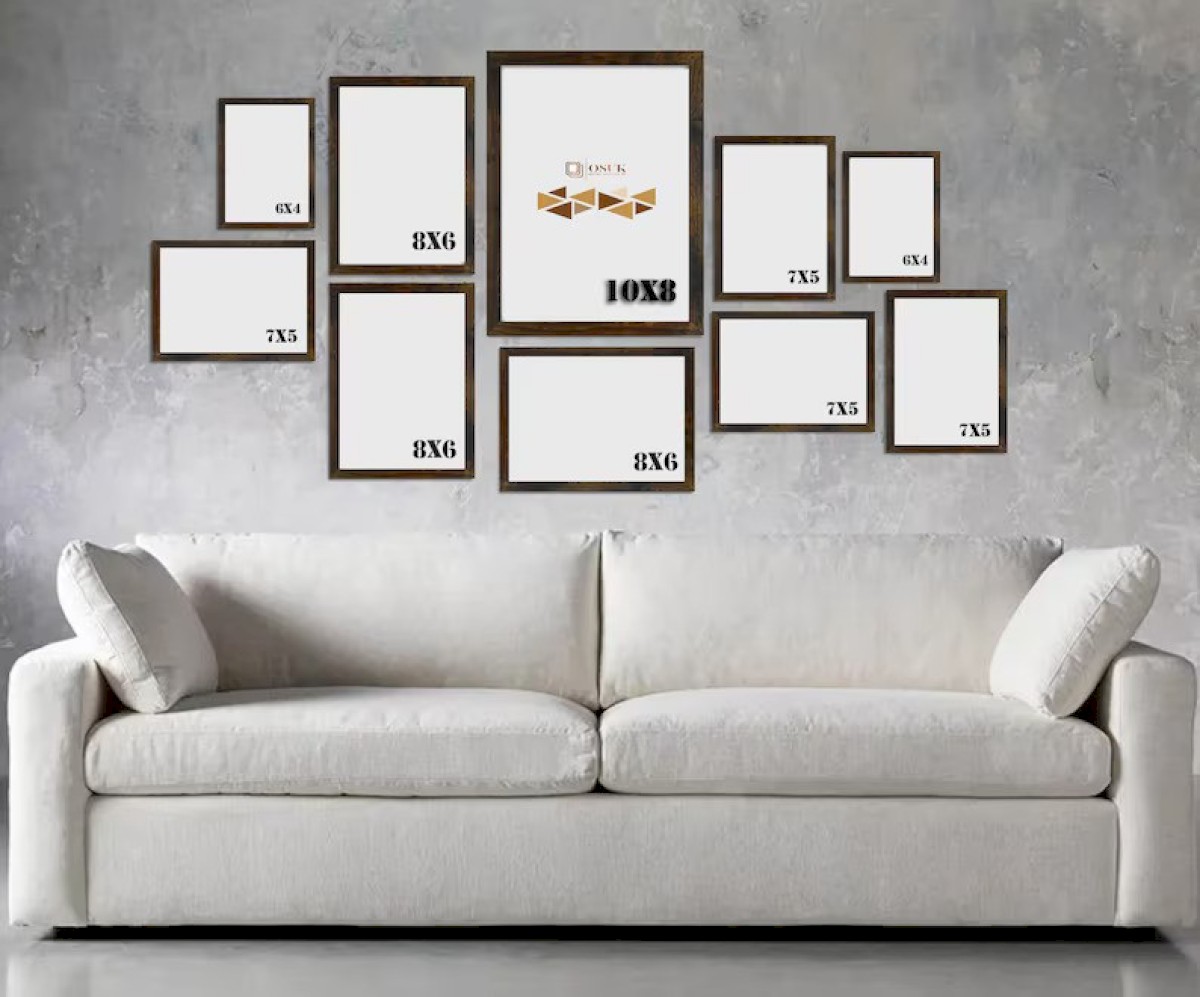 Rustic 10 Piece Multi Picture Frame - Photo Frame - Collage Wall Art Hanging Table Set Frames - Comes With 10x8" / 8x6" / 7x5"/ 6x4" Sizes