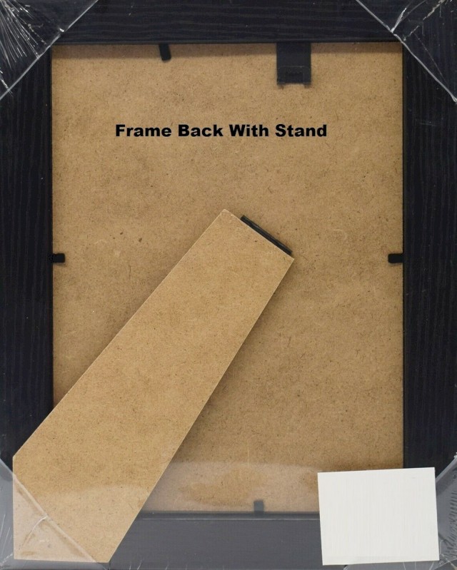 All frames sized up to 12x10 inches come with a kick stand and hanging hooks. All sizes above 12 x10 inches are hang only, hanging hooks will be provided and string may be required (not included).