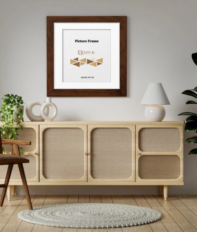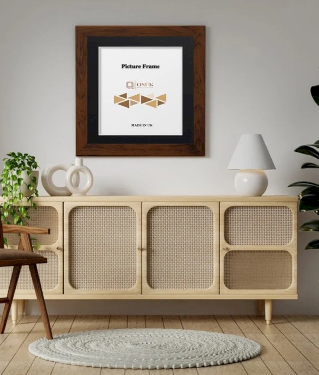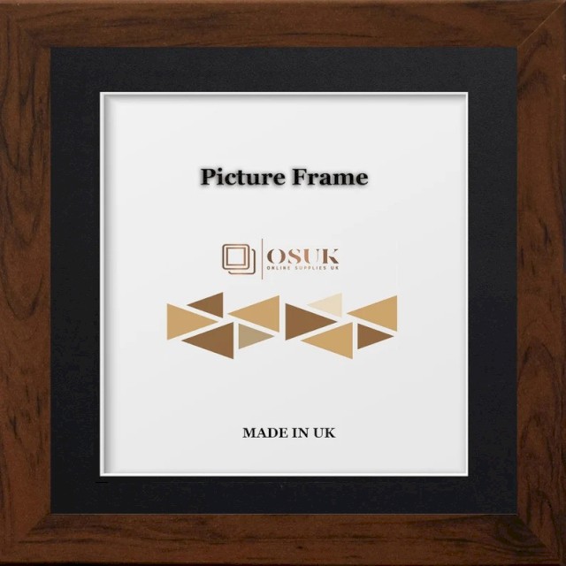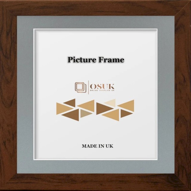 Dark Oak Square Photo Frame With Mounts - Dark Oak Wooden Effect Square Picture Frames - Black/White/Ivory/Blue/Grey Mounts - Various Sizes