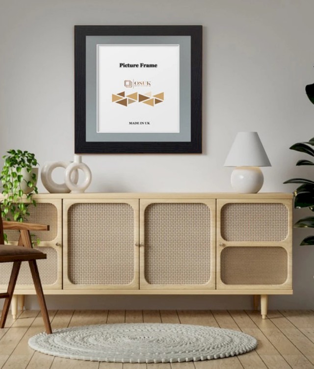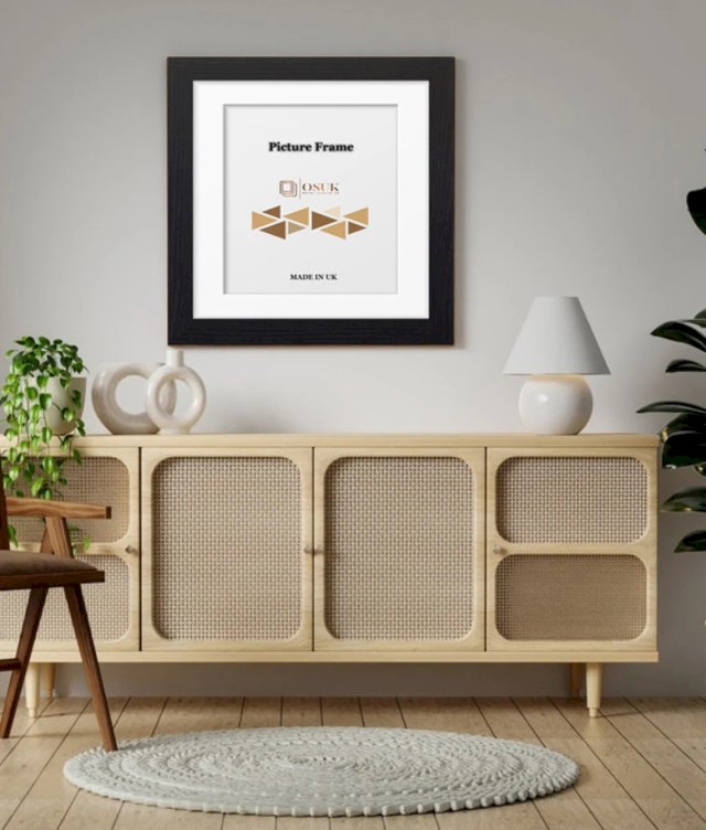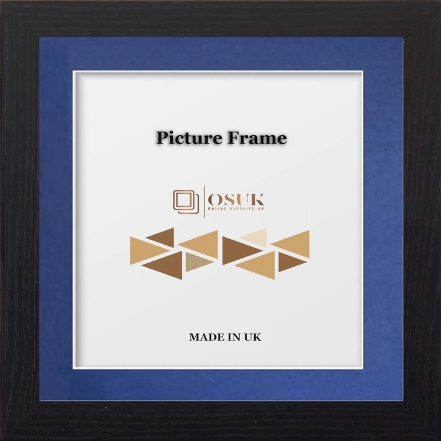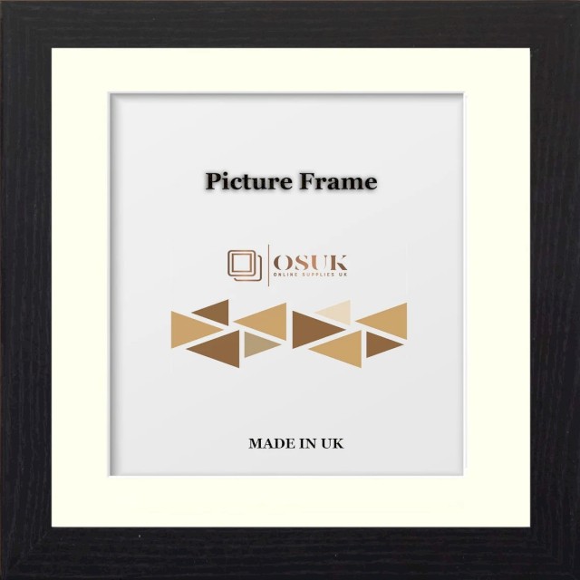 Black Square Photo Frame With Mounts - Black Wooden Effect Square Picture Frames - Black/White/Ivory/Blue/Grey Mounts - Various Sizes